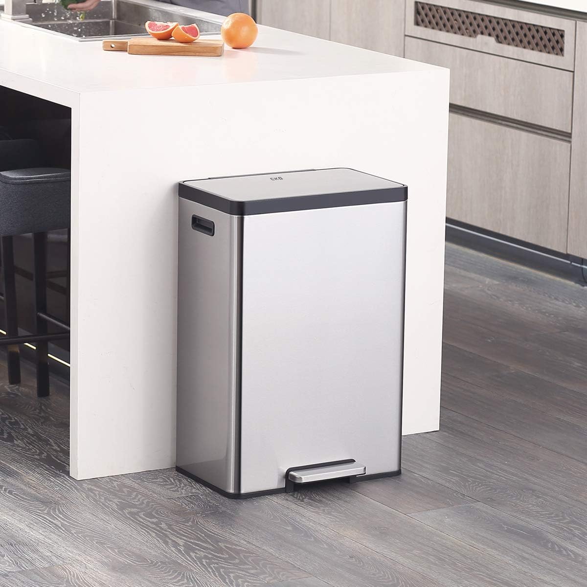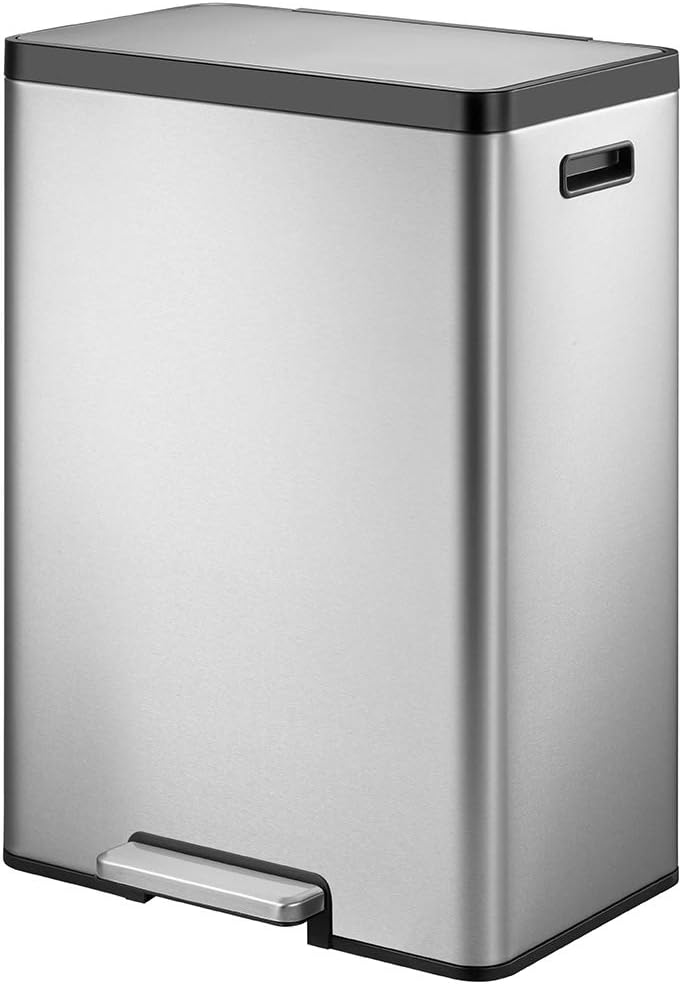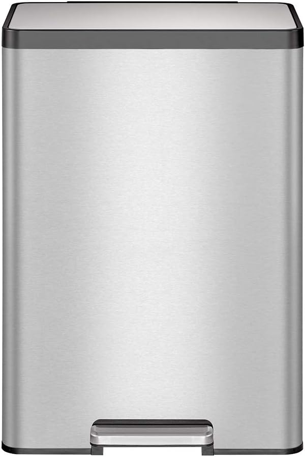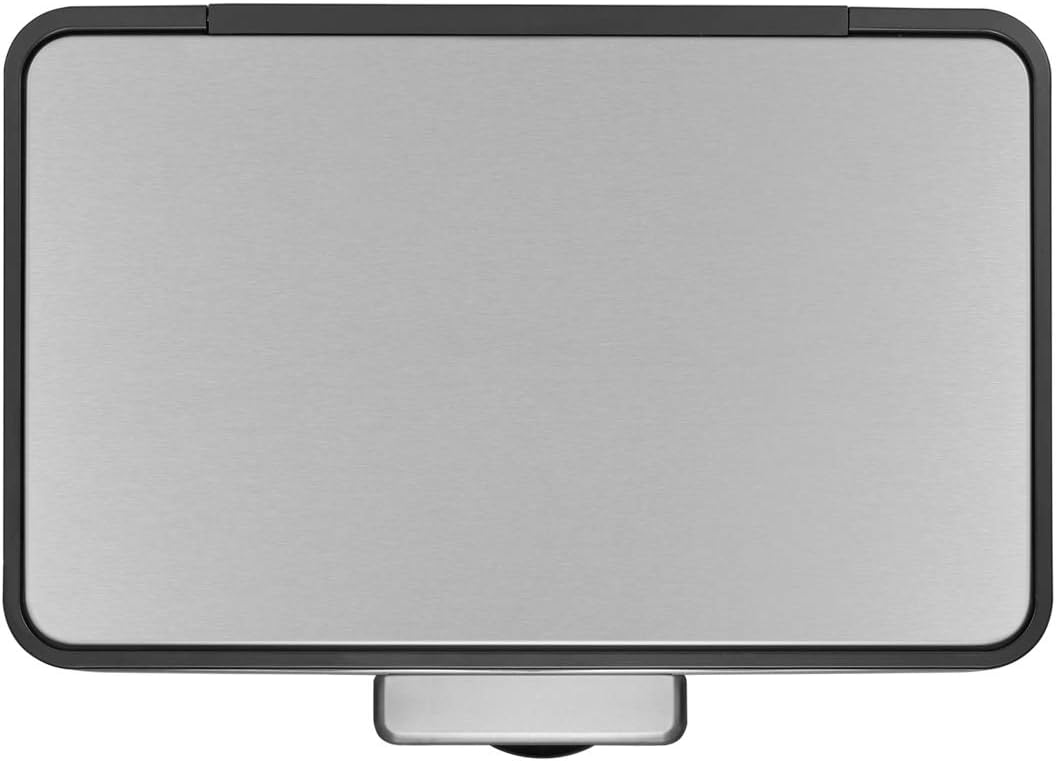 El cubo de basura rectangular EcoCasa II ofrece un diseño que ahorra espacio y se ajusta a la pared o al armario. De este modo, ofrece toda la comodidad de la eliminación de residuos sin necesidad de utilizar las manos y ocupa menos espacio en su hogar. La EcoCasa II está fabricada en acero inoxidable de alta calidad con un acabado resistente a las huellas dactilares, por lo que es fácil mantener su aspecto impecable. El duradero mecanismo de pedal en voladizo está diseñado para durar años de uso cómodo y manos libres. La tapa de cierre suave no se cierra de golpe, y cuando sea necesario, puede activar la opción de tapa abierta. La EcoCasa II tiene un compartimento desodorizante incorporado para su método favorito de control de olores entre cambios de bolsa. El estabilizador de bolsas de plástico incorporado mantiene la bolsa de basura en su sitio para que no se deslice.